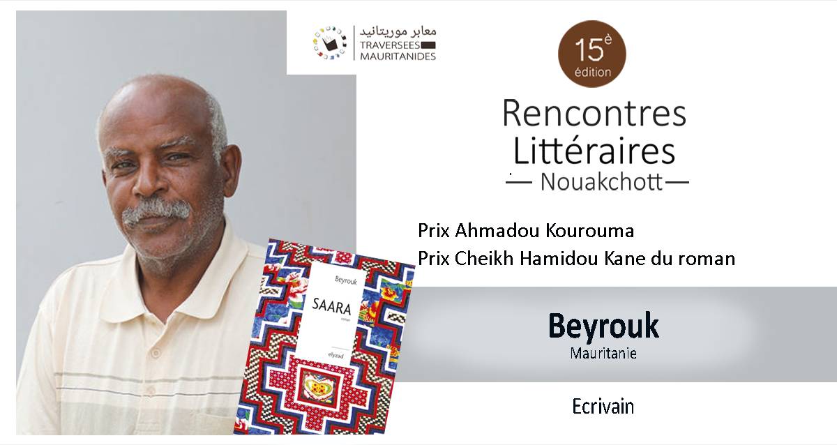 1988. Reconverti dans la fiction, il est auteur de plusieurs romans : Et le ciel a oublié de pleuvoir (Dapper, 2006), Nouvelles du désert (Présence Africaine, 2009), Parias (Sabine Wespieser, 2021) chez Elyzad Le Griot de l’émir (2013), Le Tambour des Larmes (prix Ahmadou Kourouma 2016) et Je suis seul (2018) et Saraa (2022) pour lequel il a obtenu en 2023 le prix Cheikh Hamidou Kane du roman. Beyrouk signe en 2024 la préface du livre L’Horizon pour toute demeure sur la Mauritanie de la photographe Jocelyne Forgeot qui revisite son Adrar !