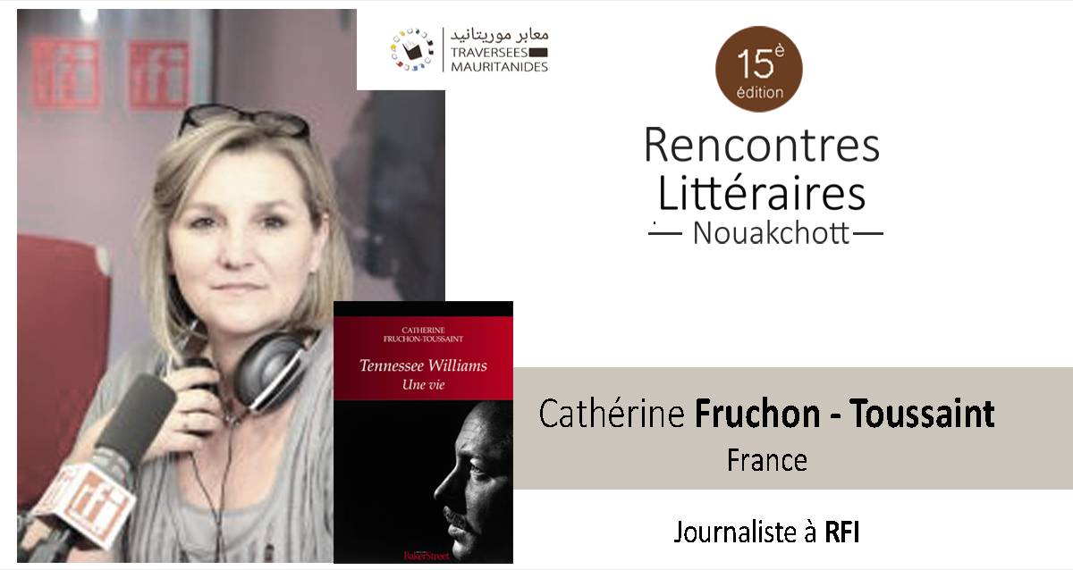 Co-fondatrice, en 2019, avec les éditions JC Lattès et RFI en partenariat avec La Cité Internationale des Arts de Paris du prix littéraire Voix d'Afriques destiné aux jeunes écrivain.es du continent, Catherine Fruchon-Toussaint décorée Chevalier des arts et des lettres en 2022, est directrice littéraire de la collection Le tour du monde en polars aux éditions du Masque. Spécialiste de l'œuvre du dramaturge américain Tennessee Williams, elle a consacré à ce dernier une biographie parue aux éditions Baker Street. Aux Traversées Mauritanides, Catherine Fruchon-Toussaint sera avec ses auditeurs !